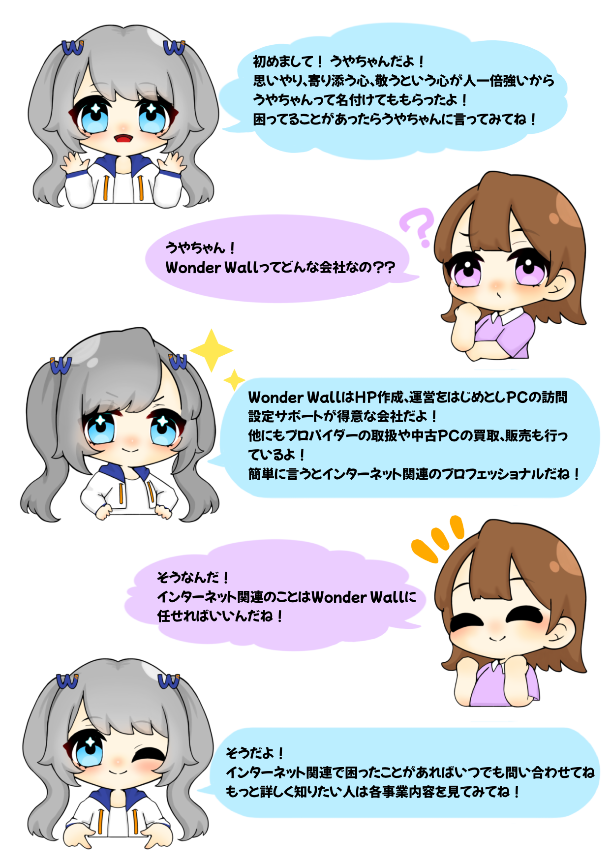 当社の公式マスコットキャラクターのうやちゃんが、WonderWall株式会社についてご案内いたします。
