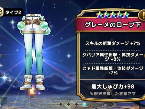 DQWの【グレーメのローブ下】の性能や習得スキルな…