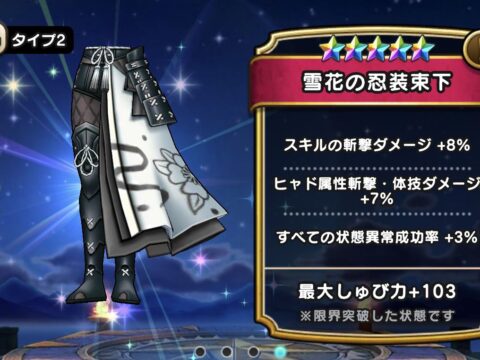 DQWの【雪花の忍装束下】の性能や習得スキルなどを…