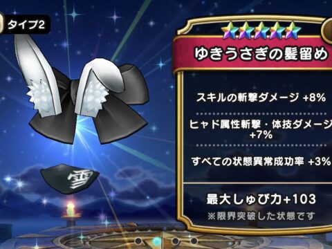 DQWの【ゆきうさぎの髪留め】の性能や習得スキルな…