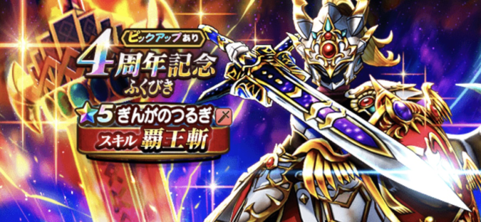 DQWの【4周年記念】装備ガチャを紹介しています。装備の適正職業や習得スキルなど参考にしてみてください。