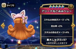 DQWの【アリーナねこみみベレー】の性能や習得スキルなどを紹介しています。【アリーナねこみみベレー】がおすすめの職業など、参考にしてみてください。