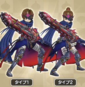 紺色と赤色ベースのきれいな装備。マントがかっこいい印象なので見た目装備としても人気があるだろう。