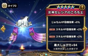 慈愛の女神セレシア装備は女神ペルセリアに対して回復量アップ、耐性アップといったスキルを習得できるため、期間中は非常に優秀な装備となっている。