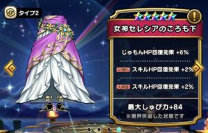 DQWの【女神セレシアのころも下】の性能や習得スキルなどを紹介しています。【女神セレシアのころも下】がおすすめの職業など、参考にしてみてください。