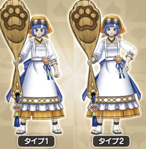 料理人を連想させるようなエプロンを着ている。大きなしゃもじは見た目装備としてもユニークさがあっておもしろい。