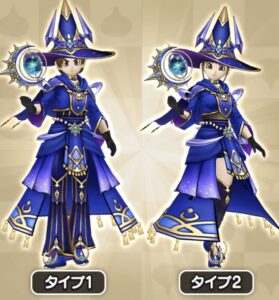 魔法使いのような見た目をした装備。男女で下装備が若干異なるので、好みのタイプに変化させて楽しもう。