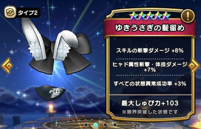DQWの【ゆきうさぎの髪留め】の性能や習得スキルなどを紹介しています。【ゆきうさぎの髪留め】がおすすめの職業など、参考にしてみてください。