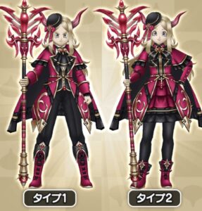金髪ロングヘアが特徴の見た目。紅色と黒の上品な見た目をした装備なので見た目装備としても◎だろう。