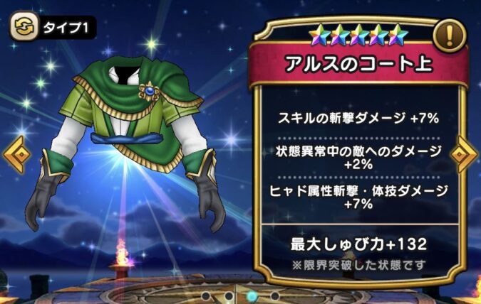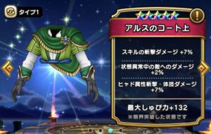 DQWの【アルスのコート上】の性能や習得スキルなどを紹介しています。【アルスのコート上】がおすすめの職業など、参考にしてみてください。