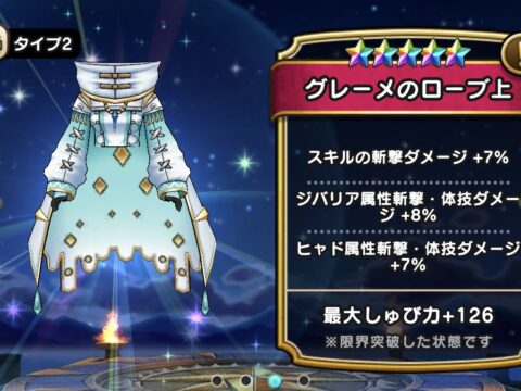 DQWの【グレーメのローブ上】の性能や習得スキルな…