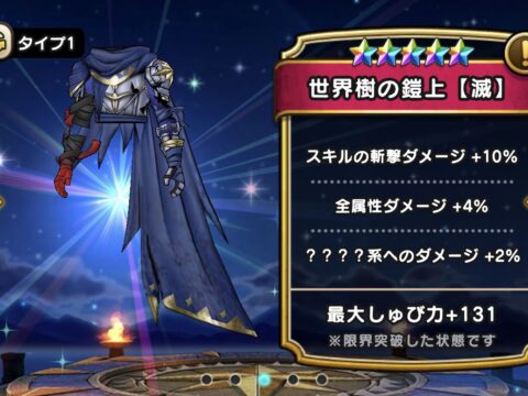 DQWの【世界樹の鎧上(滅)】の性能や習得スキルな…