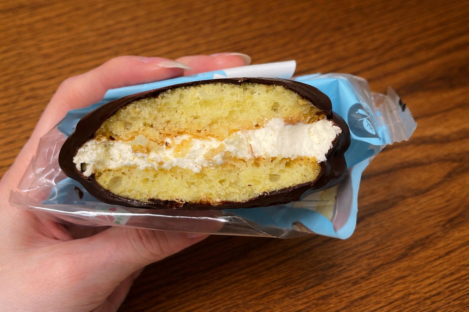 見た目はころんと丸みのあるフォルムで、つやっとしたチョコのコーティングがとっても美味しそうで購入しました。